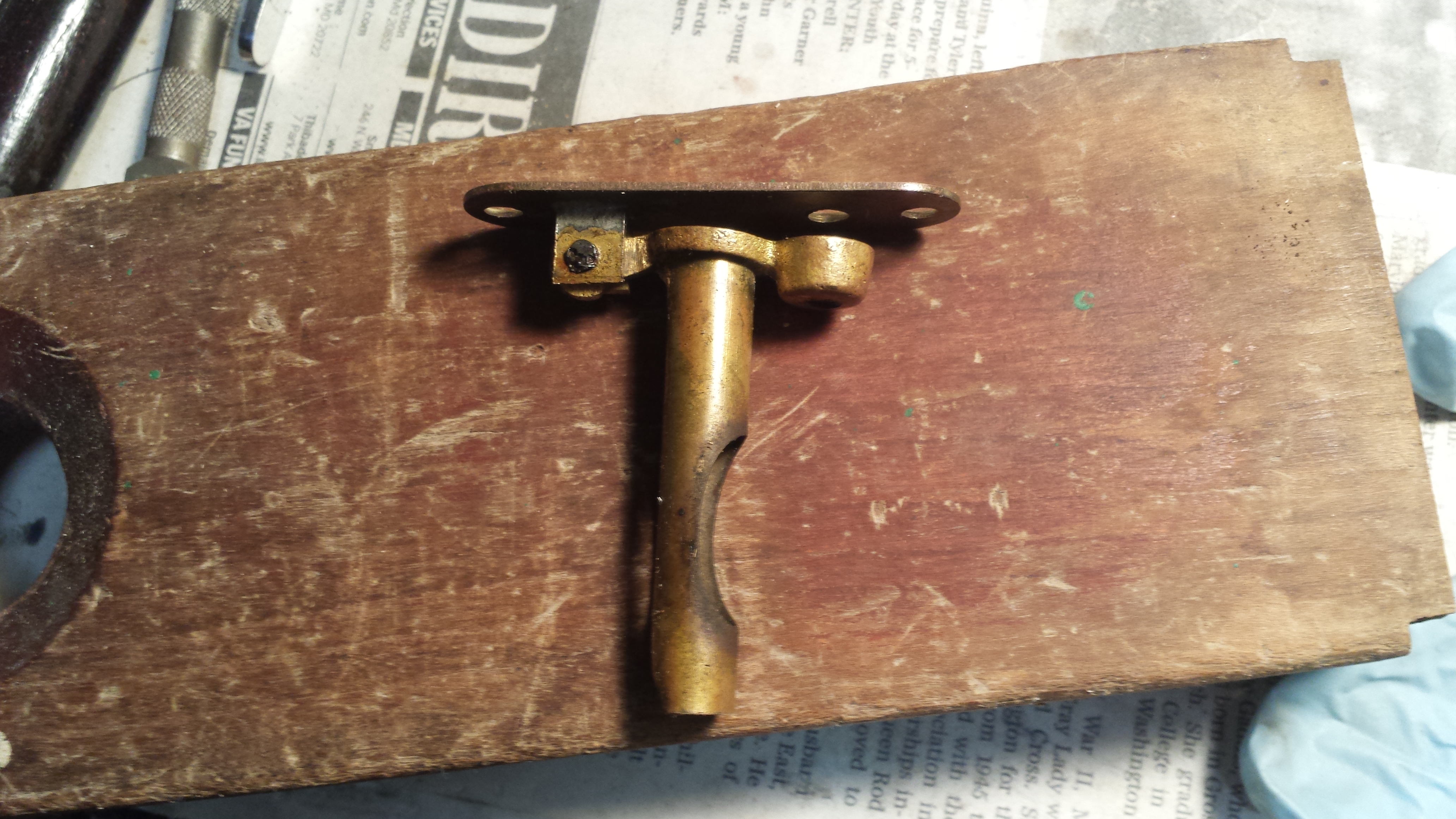 I disassembled and removed all the hardware to better evaluate what needed to be done in terms of cleanup, and to assess the broken plumb vial. After cleaning the rust off all the screws and the vial adjustment mechanisms, I cleaned the crud off the brass plates and end caps. I never polish old brass hardware, but I decided in this case to clean off most of the oxidation in order to better see the center scribe line.