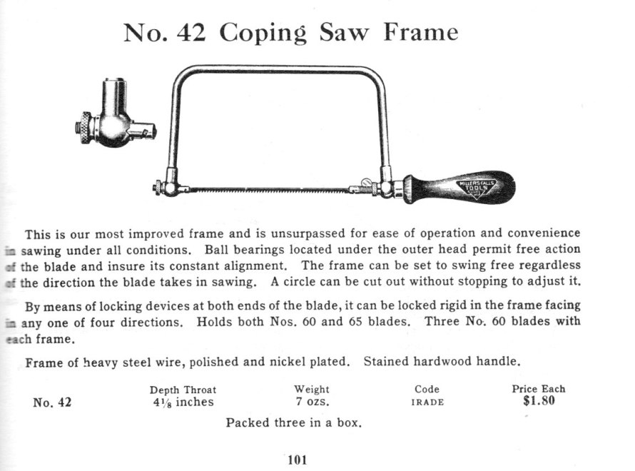 Fig 1: Millers Falls catalog entry for No.42 coping saw (1938)