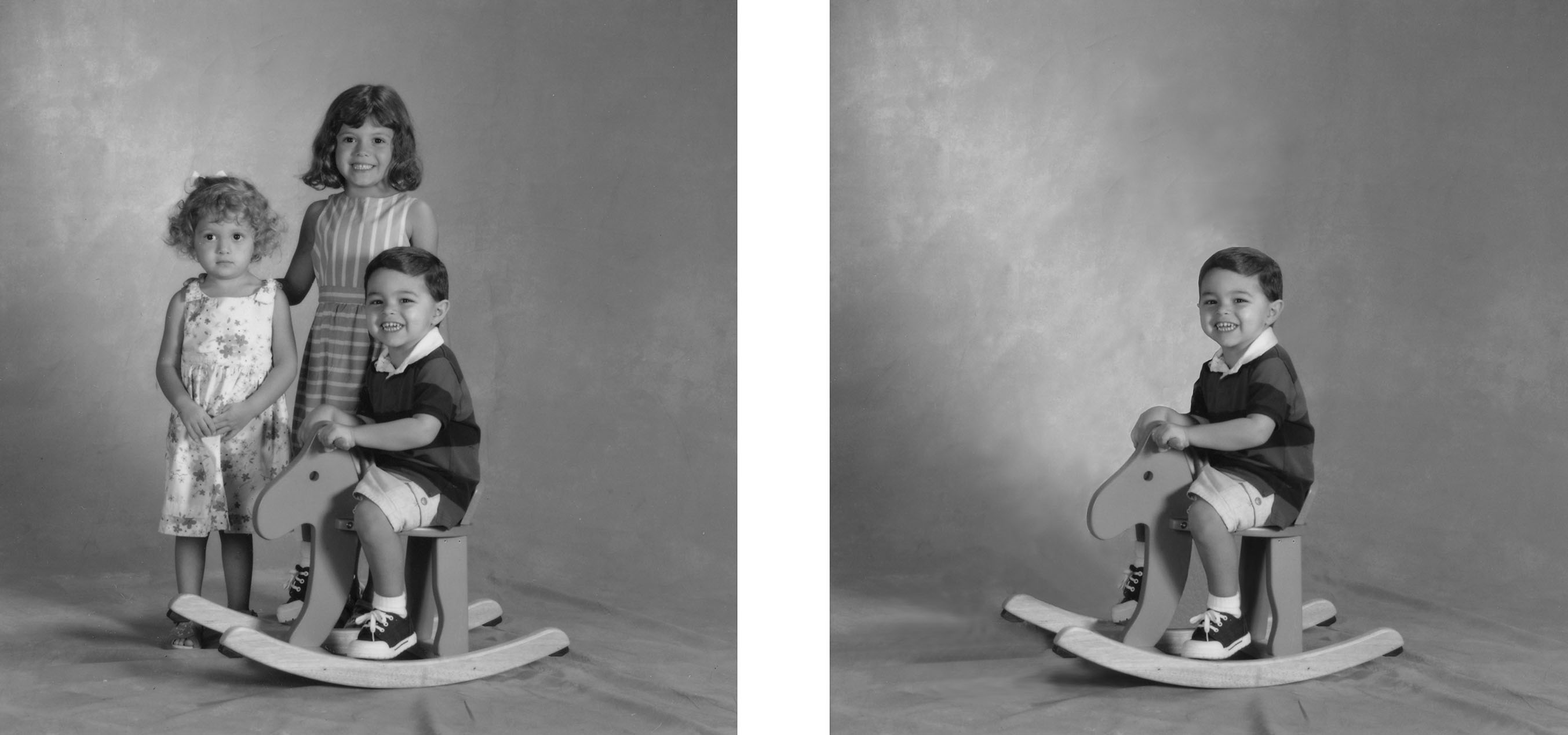 This belonged to a former co-worker who wanted his nieces removed from his son’s photo. I was able to remove the girls and fill in the space to match the background.
